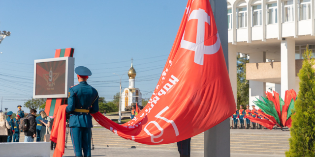 Знамя Победы подняли на площади Суворова в Тирасполе Этот флаг – копия штурмового знамени 150-й Идрицкой стрелковой дивизии, водружённого на здание Рейхстага 09 Май, 2022, 09:21 Общество День Победы
