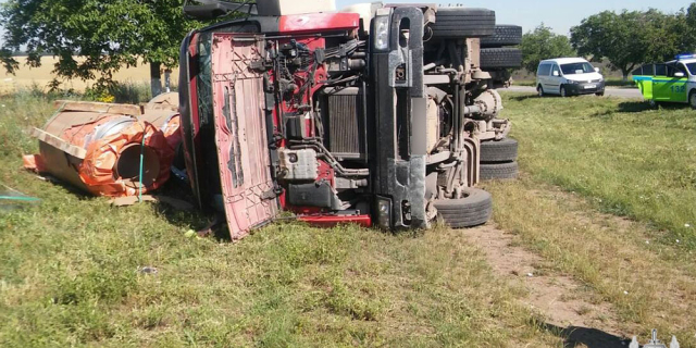 На трассе вблизи села Малаешты перевернулся грузовик