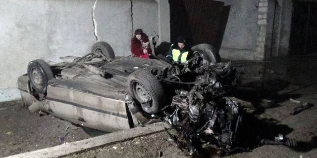 В Парканах иномарка врезалась в забор и опрокинулась на крышу