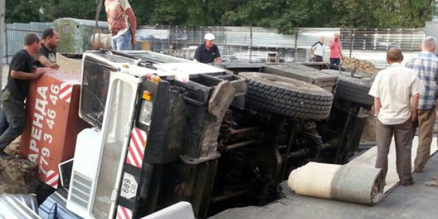 В Тирасполе перевернулся 25-тонный строительный автокран Под ним провалилось дорожное полотно 16 Сен., 2016, 15:43 Происшествия ДТП Тирасполь