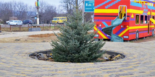 Здесь в ближайшее время установят скамейки, фонари уличного освещения, высадят зелёные насаждения, построят фонтан