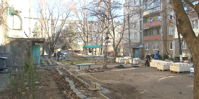 Коммунальщики начали обустраивать удобные дорожные съезды и строить новые тротуары во дворах многоэтажек