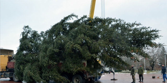Зелёную красавицу уже установили на центральной площади города