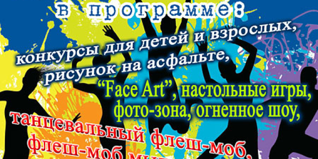 На площади Победы прошла развлекательная программа, включающая в себя конкурс рисунка на асфальте, face-art и огненное шоу