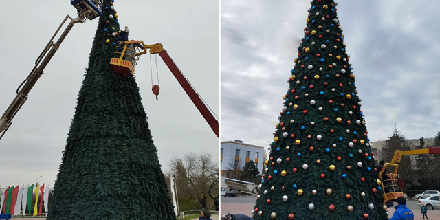 Уже развесили шары, скоро на зелёной красавице появятся гирлянды