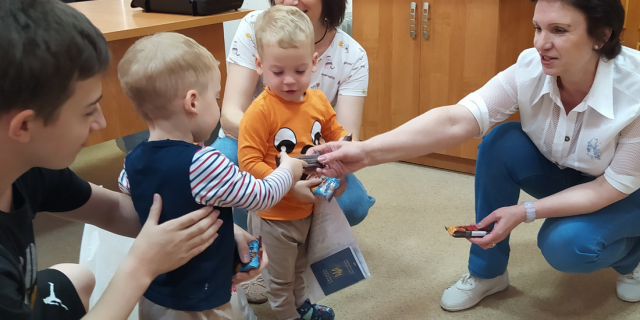 Продуктовые наборы и сладости раздавали в городском пункте сбора и оказания гуманитарной помощи