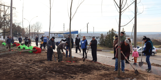 В сквере высадили около сотни саженцев клена, акации, липы, голубой ели и восточного платана