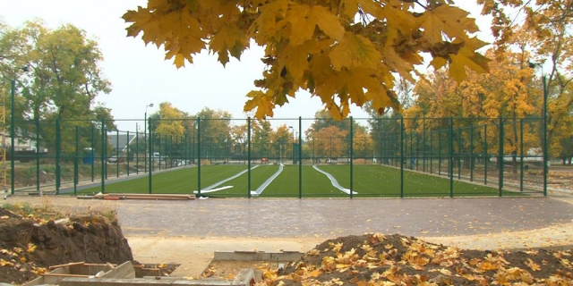 Здесь появилось футбольное поле и баскетбольная площадка, установили ограждение