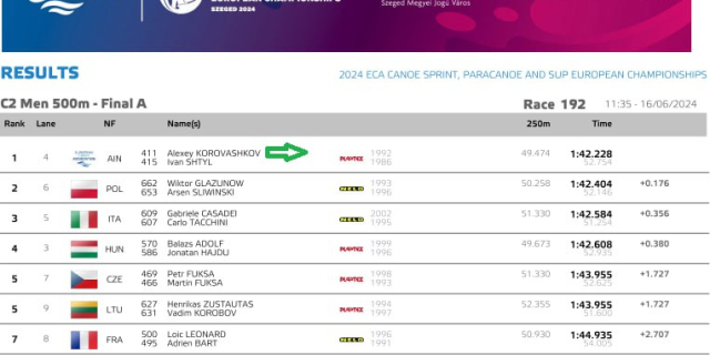 Золото чемпионата Европы завоевал гребец Алексей Коровашков в паре с Иваном Штылем Их каноэ-двойка быстрее всех преодолела дистанцию 200 м 16 Июн., 2024, 12:10 Спорт Гребля