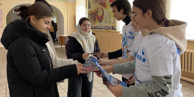 Они раздавали буклеты о героях Великой Отечественной войны, чьи имена носят улицы города