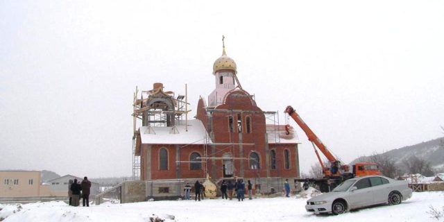 На церкви Успения Пресвятой Богородицы в Каменке установлены первые два купола Всего над ней будут возвышаться семь крестов 10 Фев., 2017, 11:10 Общество Каменка Приднестровье