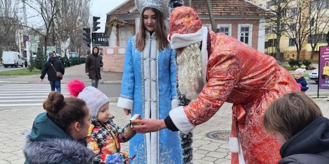 Активисты «Звезды» поздравляли детей на улицах Тирасполя Дед Мороз и Снегурочка дарили подарки за стихи и песни 31 Дек., 2024, 12:44 Общество МД «Звезда» Новый год