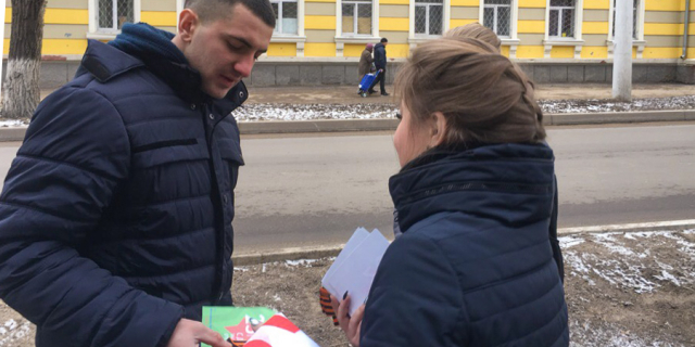 Ребята раздали более 300 поздравительных открыток и георгиевских лент