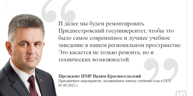 Глава государства поздравил коллектив и студентов ПГУ с 92-летием вуза Вадим Красносельский отметил, что госуниверситет является современной образовательной площадкой и эффективным научно-исследовательским центром 01 Окт., 2022, 12:55 Общество Президент ПГУ