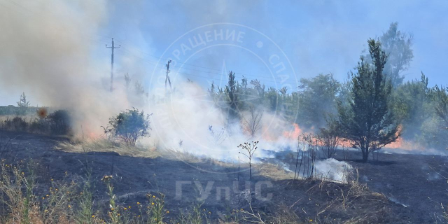 На окраине села Бычок горит сухая трава Примерная площадь пожара – 4 гектара 30 Июн., 2025, 14:14 Происшествия пожар Бычок