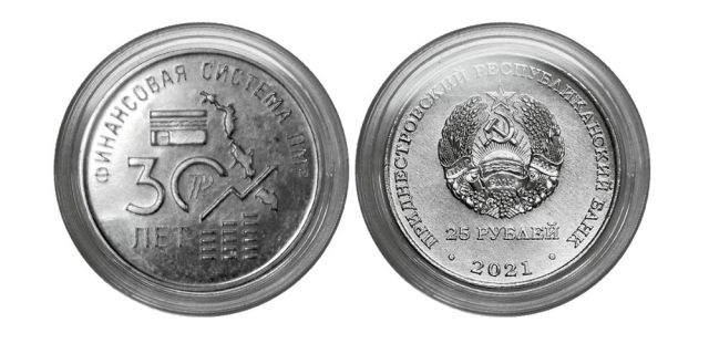 ПРБ выпустил памятные монеты «30 лет финансовой системе ПМР» Тираж 2 500 штук, номинал - 25 рублей 20 Май, 2021, 15:57 Общество ПРБ монеты