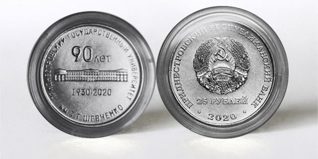 ПРБ ввел в обращение памятные монеты «90 лет образования ПГУ» Монеты номиналом 25 рублей изготовлены из недрагоценных металлов 11 Ноя., 2020, 12:34 Общество ПРБ монеты