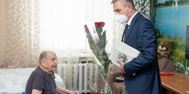 Вадим Красносельский поздравил с 96-летием ветерана Николая Гуляева Из-за карантинных ограничений общение было непродолжительным: обмен приветствиями, президентское поздравление и взаимные пожелания здоровья и успехов 11 Окт., 2021, 16:35 Общество Президент поздравление