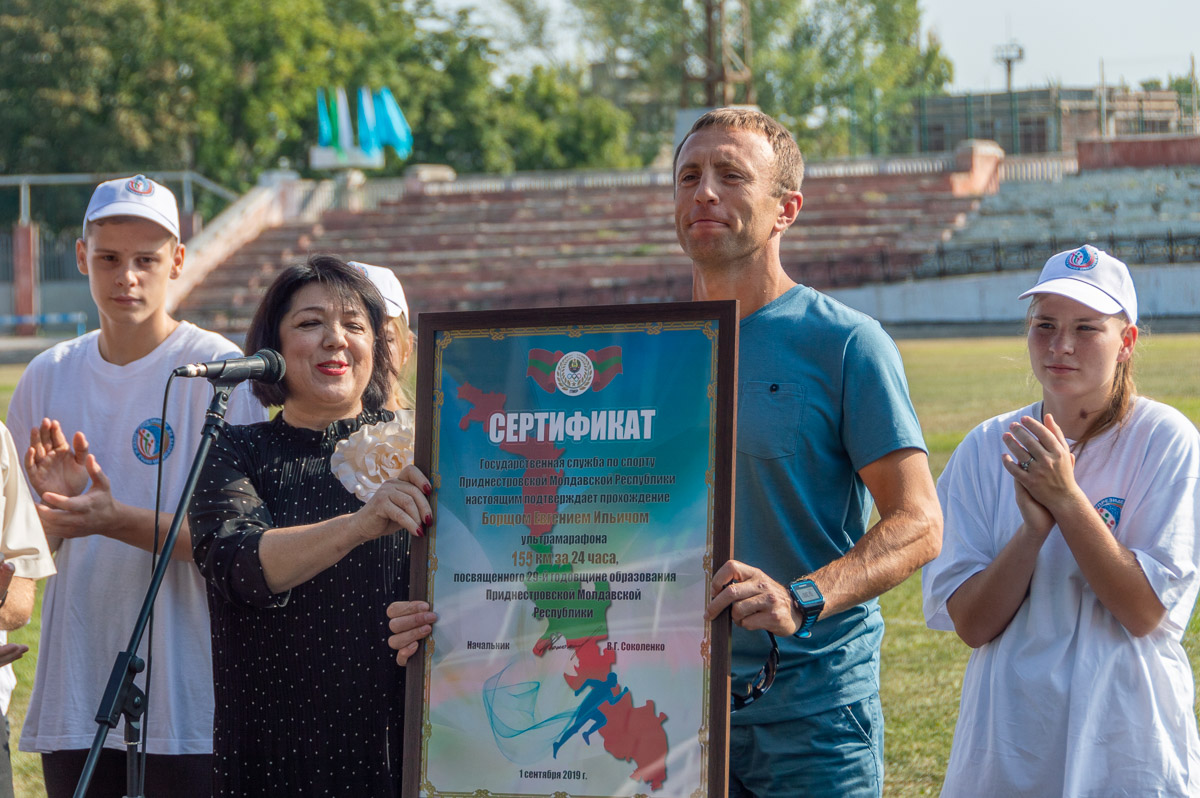 Tiraspol, September, 1. /Novosti Pridnestrovya/. To mark the 29th anniversary of the PMR, Evgeny Borsch run the ultramarathon. At the city stadium, a representative of the Pridnestrovian State Sports Service presented him a certificate, which testifies to finishing the race of 155 km in 24 hours. The athlete said that that was his personal record.