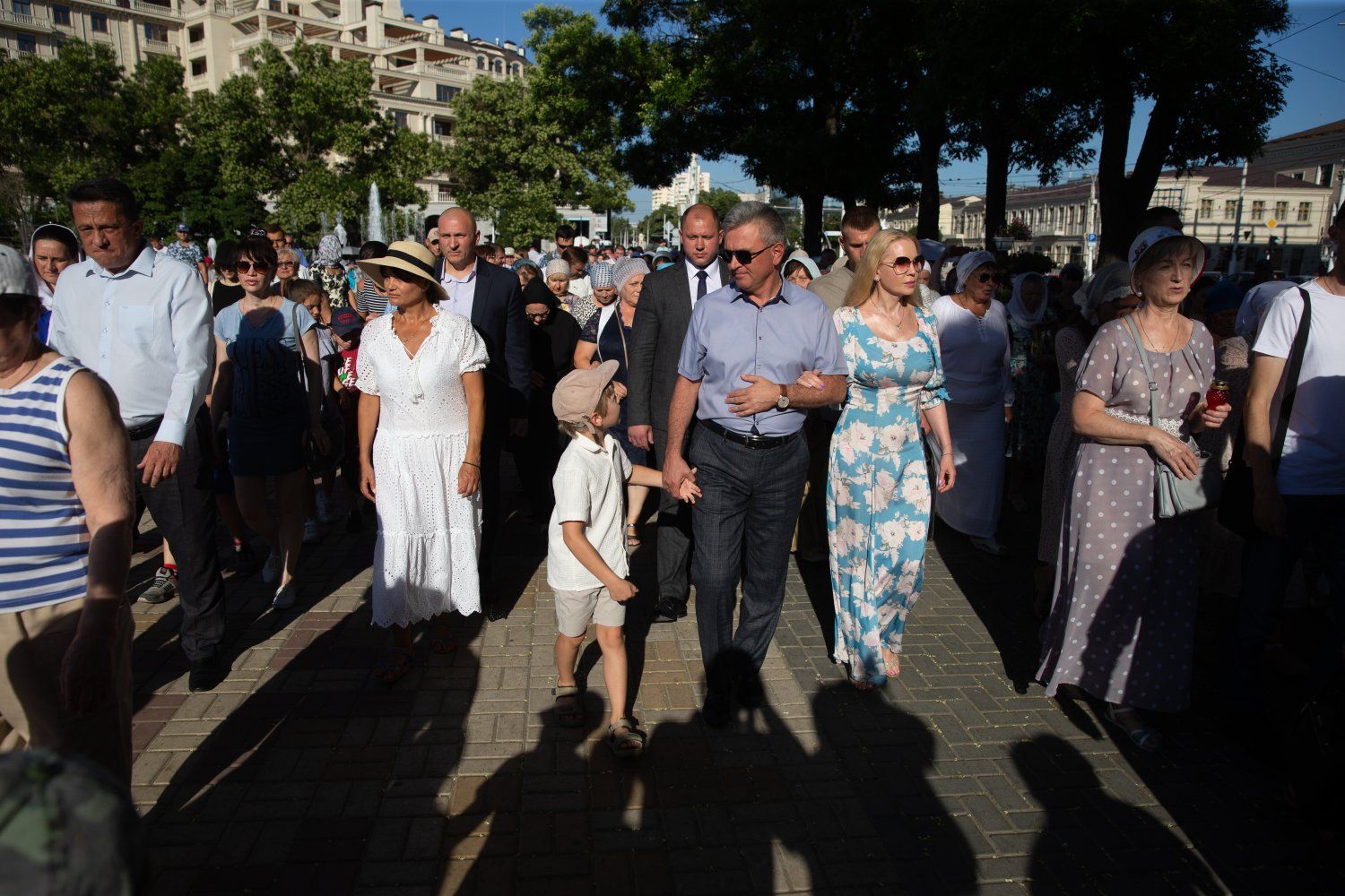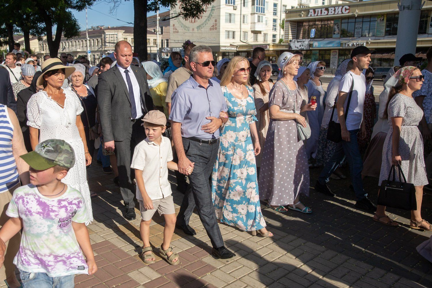 08 Jul., 2024, 19:03Today is marked as the Day of Family, Love and Fidelity in the secular calendar and July 8 in the church calendar is the day of remembrance of Saints Peter and Fevronya, the Orthodox patrons of marriage. Pridnestrovians do not divide these holidays. Traditions are intertwined. They handed out daisies in the morning to passers-by - symbols of this day and a happy family life. A religious procession was organized in the center of the capital in the evening. Residents of Tiraspol and guests of the city walked from the Church of the Nativity of Christ to the chapel on Pokrovskaya Square, where a thanksgiving prayer was held. The service was conducted by Archbishop of Tiraspol and Dubossary Sawa. The Krasnoselsky family took part. The PMR President was accompanied by his wife, children and grandchildren.