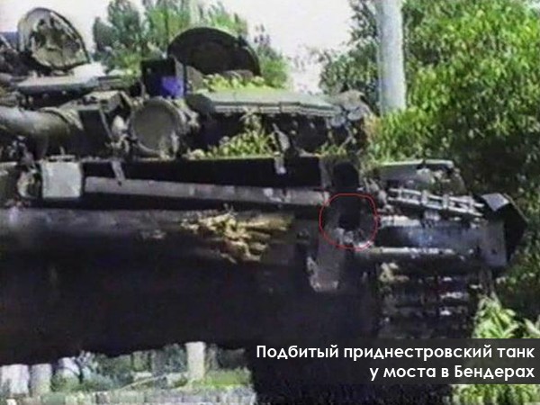 One tank was knocked out and put out of action. It moved to Parkany, but suddenly near the viaduct arch its ammunition detonated, and the tank exploded. A cumulative shell hit another tank and jammed its manholes — the tank was burnt out. A third tank, manoeuvring, left the range of gun fire, but was knocked out from a grenade launcher. The Pridnestrovian soldiers attacking the bridge had to retreat.