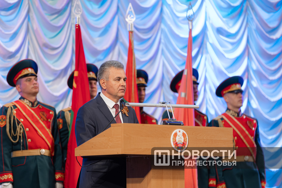 Our Pridnestrovian people, Pridnestrovie as a territory met the war on June 22, 1941, like the entire Soviet Union. Our fellow countrymen resisted. Fighter battalions were formed from the first days. The enemy was held back on the approaches to the Dniester. Of course, our fellow countrymen would have defended Pridnestrovie, but there are common reasons, common problems of that time 1941, of course. Nevertheless, even the resistance here in Pridnestrovie postponed the capture of Odessa, which became possible in preparation for defense, and then for the forced retreat. Then our Pridnestrovians fought on all fronts of the Great Patriotic War. Tens of thousands of people did not return home, here. They died, they went missing, they are buried throughout the territory of the Soviet Union and Europe. Many of our compatriots found their last hour, unfortunately, in the execution pits, where the German-Romanian occupiers shot people in the so-called "transnistria" on the basis of nationality. The numbers are different too. No one can say how many. Many of our compatriots perished in concentration camps on the territory of Europe. I am convinced that not one of them died for nothing. Each of them contributed to the victory of the Soviet Union over fascist Germany and the axis states.