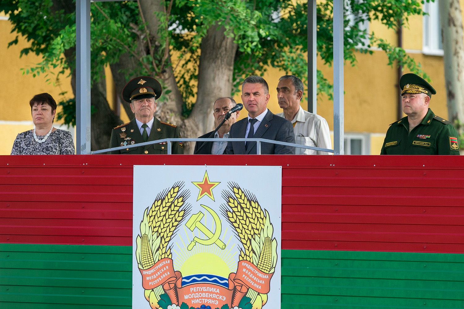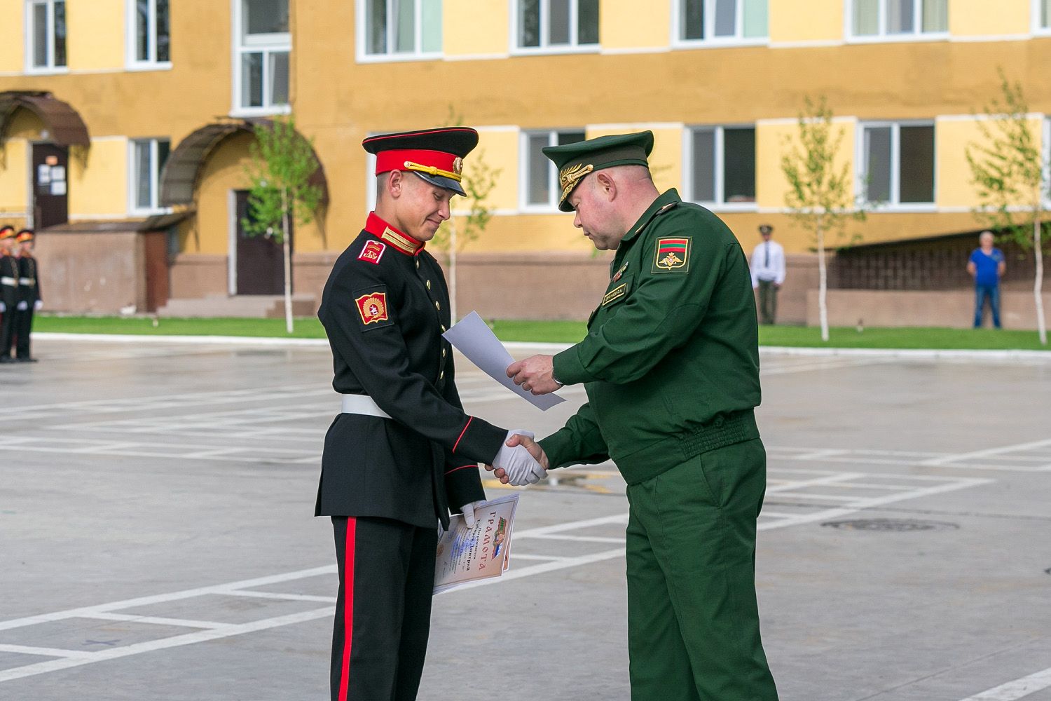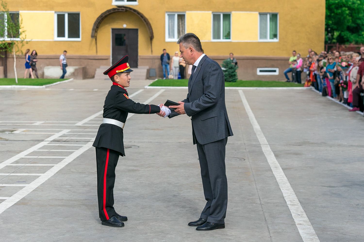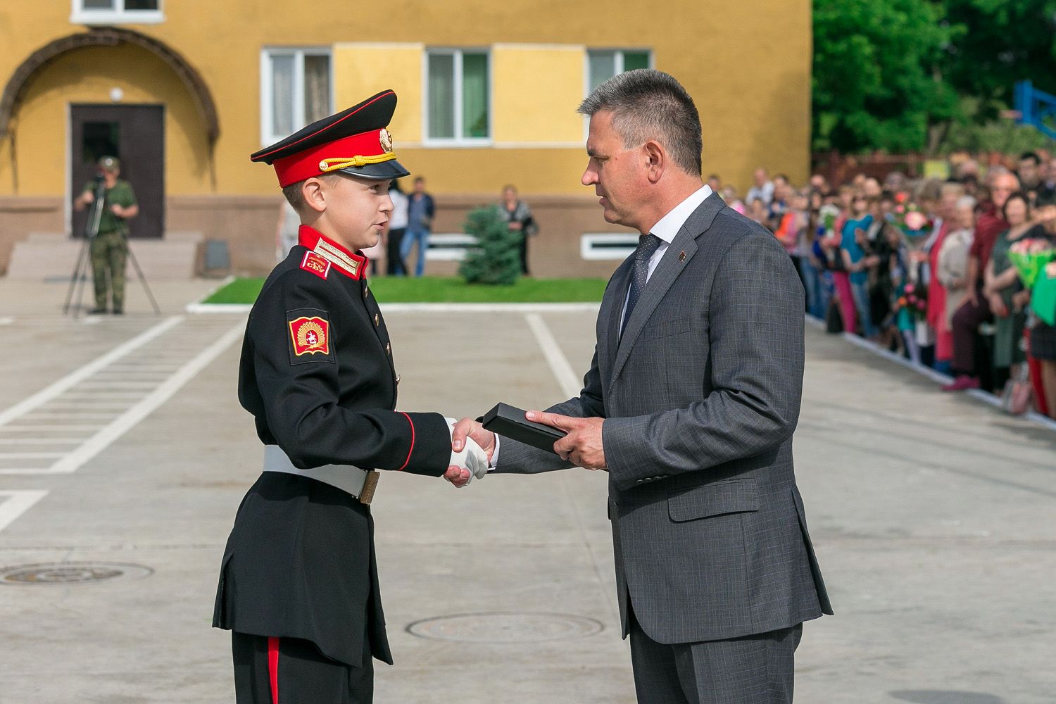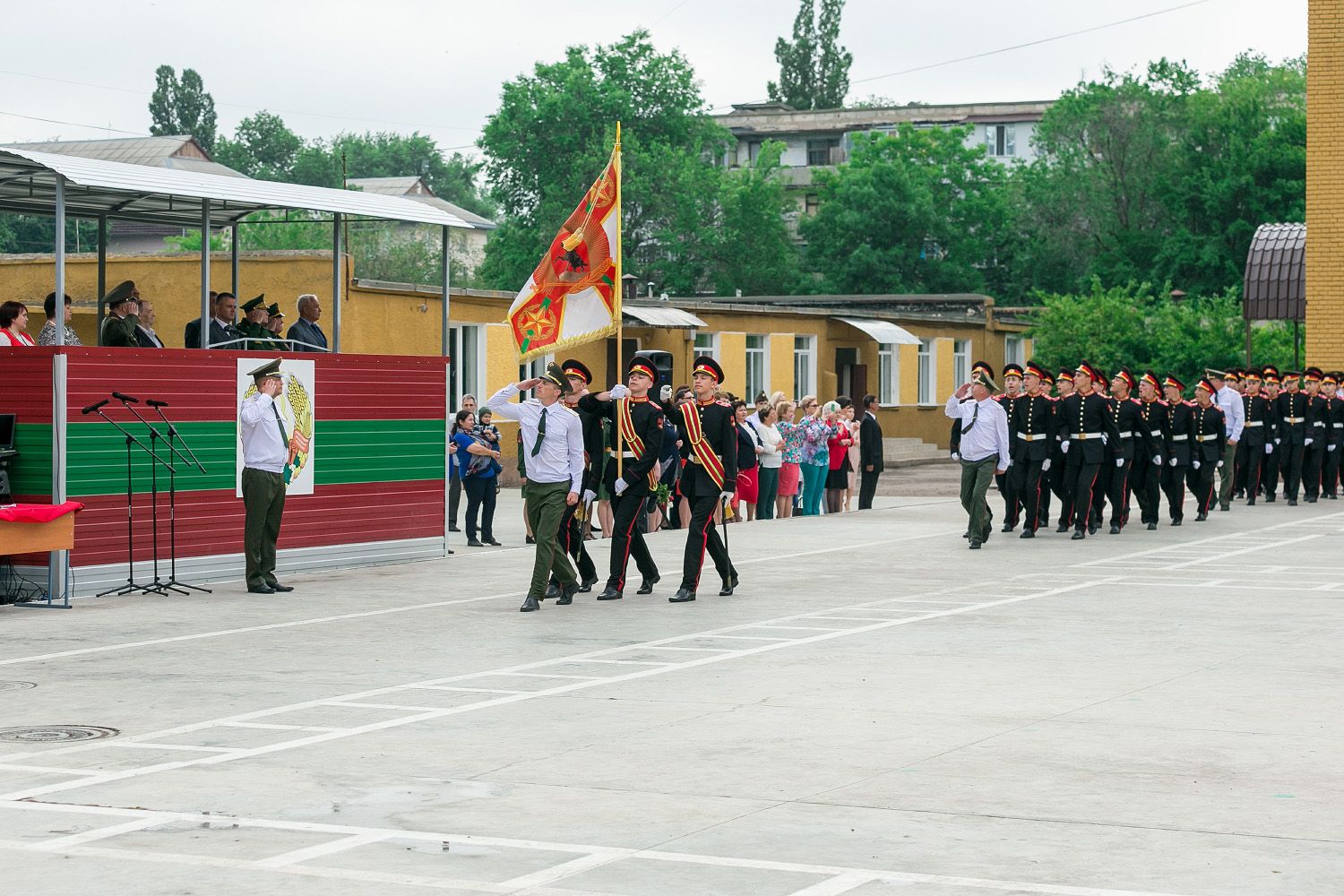 A number of pupils received certificates and gifts from the hands of the President for good study and success in sports. Three platoons of the Tiraspol Suvorov Military School are marked with special pennants.