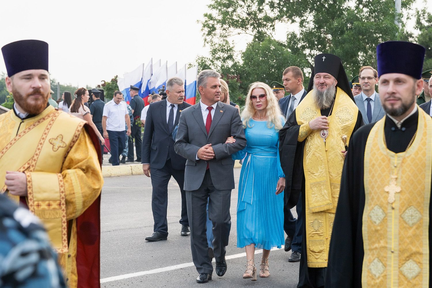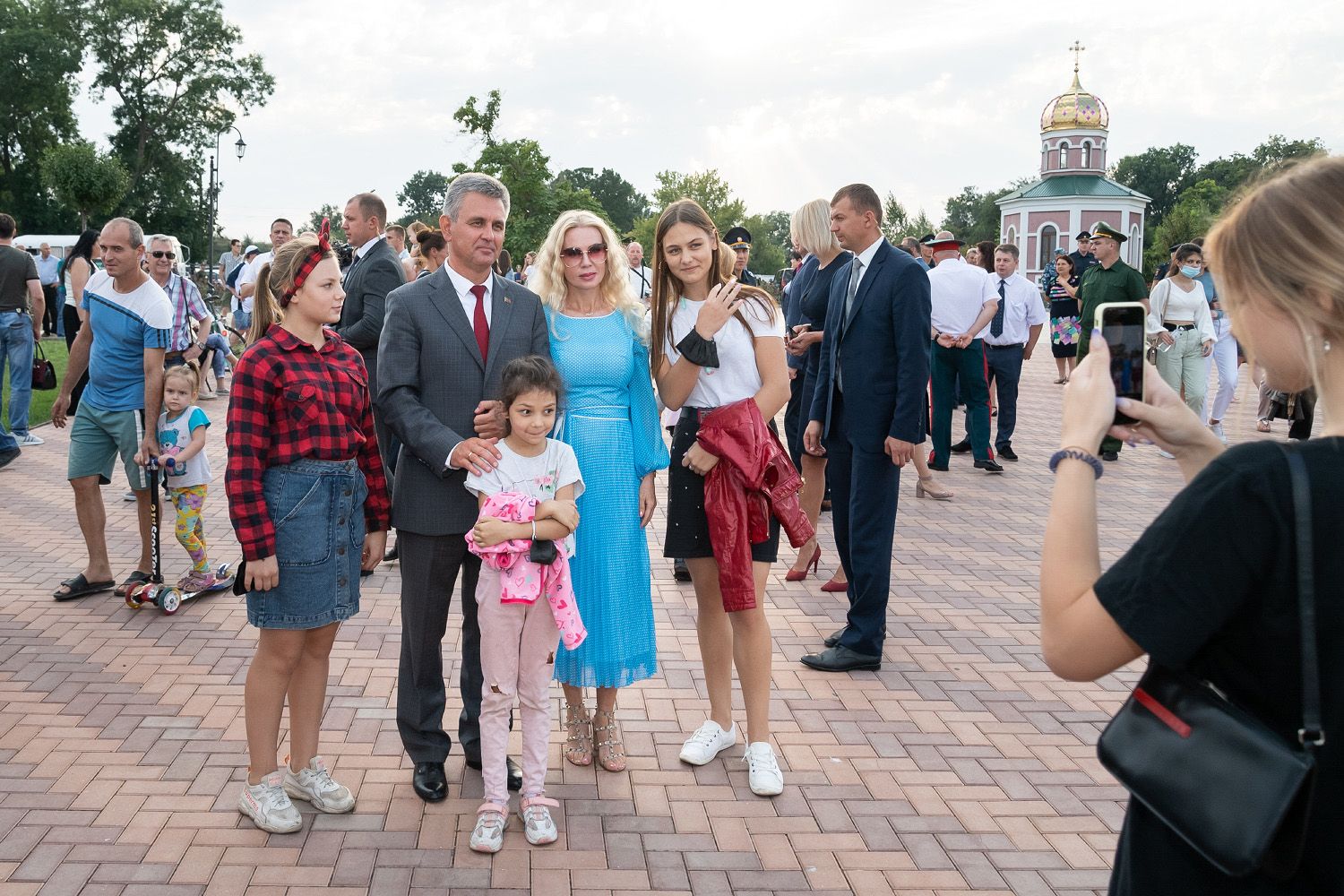 The PMR President with his wife took part in a prayer service conducted by Vladyka Sawa. Memorial candles were lit. The parade of the Company of the Guard of Honor of the Ministry of Defense of the Pridnestrovian Moldavian Republic took place on the park ground later. The celebration of the next anniversary of the formation of the 55th Podolsk Infantry Regiment ended with a concert of the "Dniester" Vocal Instrumental Ensemble of the Ministry of Internal Affairs of the Pridnestrovian Moldavian Republic.