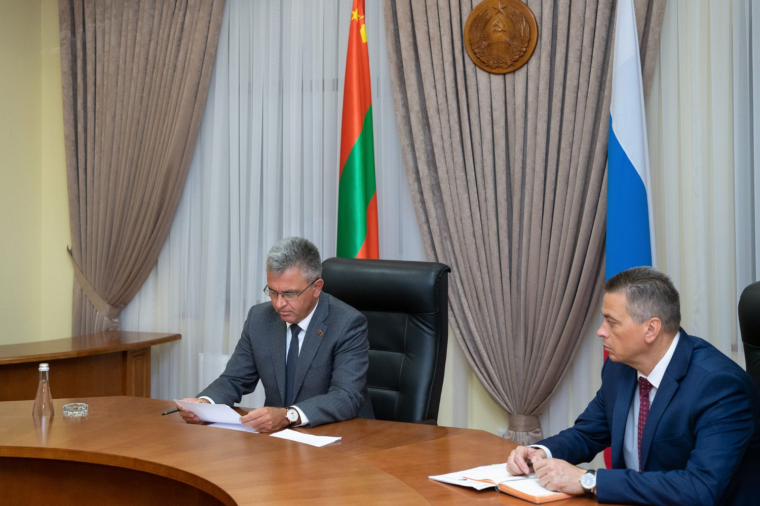 20 Aug., 2021, 13:17The President chaired a meeting on preparations for the upcoming Russian elections in Pridnestrovie. Residents of the republic with Russian citizenship will participate in the formation of the new composition of the State Duma of the Federal Assembly. To discuss issues related to the organization of voting, the PMR President invited the heads of the presidential administration, the Government, the Supreme Council, the Central Election Commission, a number of ministries and departments, the Operational Group of Russian Forces in Pridnestrovie as well as the heads of state administrations and chairmen of city councils. The working discussion was held in the video conference mode.