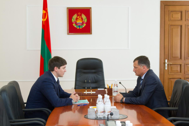 According to the Prime Minister's order, Dmitry Boltrushko met with the director of the Department of Economic Cooperation with CIS and Eurasian Integration Development of the Russian Economic Development Ministry Ilya Galkin. Some issues of Pridnestrovie's export promotion in the Russian market were discussed at the meeting.
