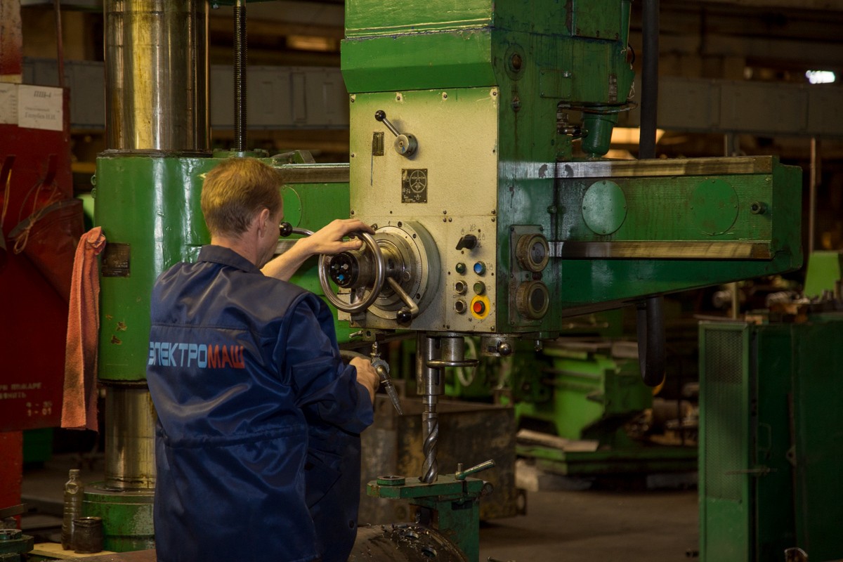 Elektromash has welding, blanking, mechanical, active part and electric machine shops, as well as a blacksmith's shop and even an oxugen-nitrogen station. Each shor is divided into several sections.
