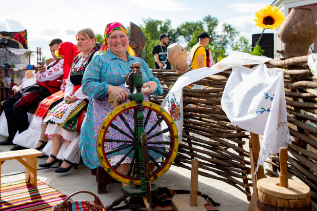 Traditions and ceremonies of ancestors were shown by residents of Parkany in the improvised Bulgarian house. Each subject here had a long-term history. For example, the bed which was nearly one and a half centuries old was laid by the sheet weaved manually. The drawing on it was embroidered with a special Bulgarian cross, one of the organizers of the farmstead Carolina Gaydarzhi told.