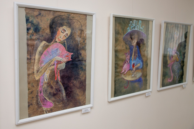 Within the exhibition, Tatyana Shuma presented two paintings with the image of a pink cat and four new works which continues her popular series «Cats’ Lovers». It should be noted that the public saw pathos ladies with cats for the first time ten years ago. A decade later they became more sedate, thoughtful.