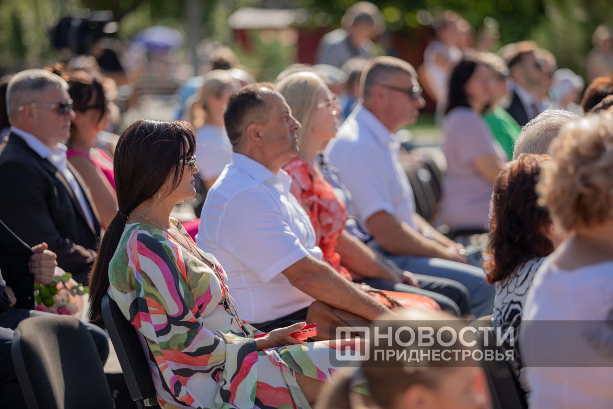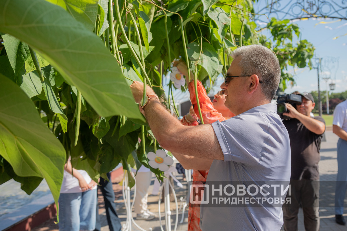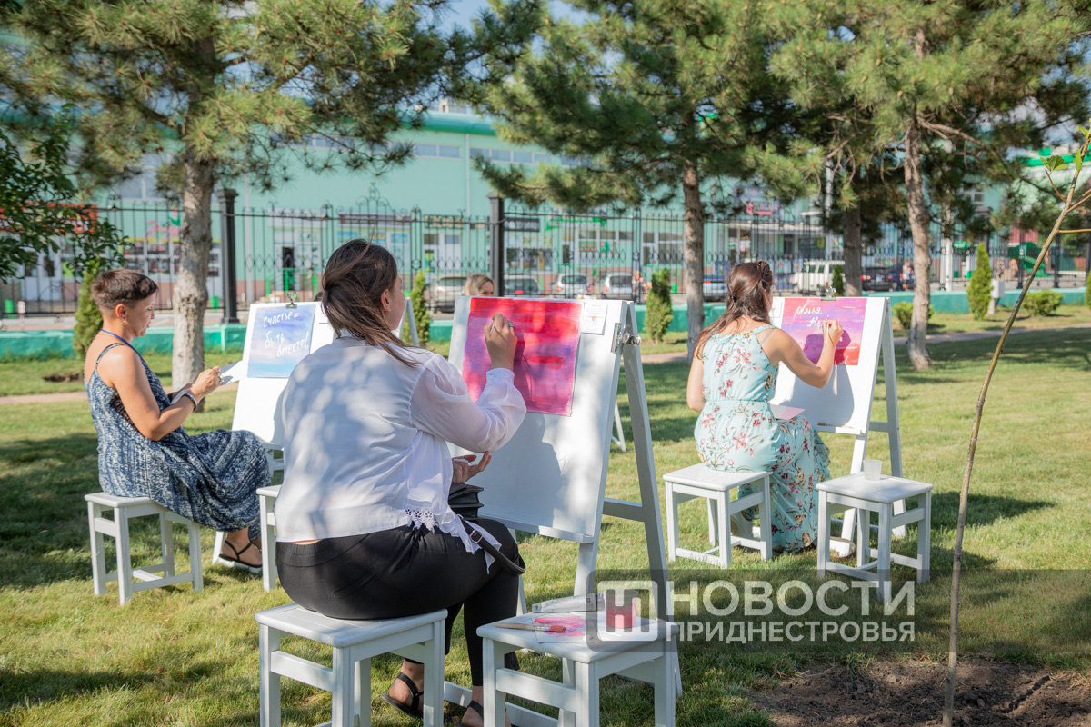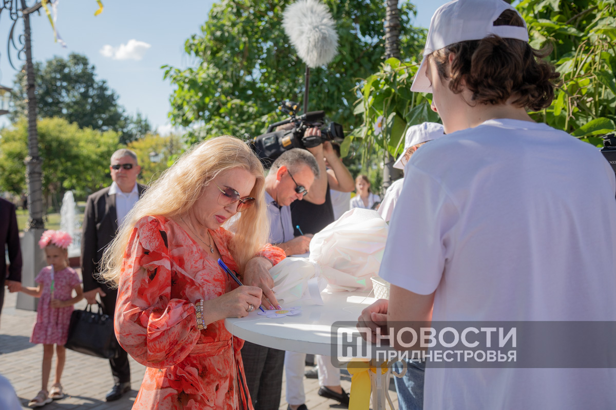 05 Jul., 2024, 20:38Pridnestrovians are preparing for the Day of Family, Love and Fidelity. A series of thematic events has started. The “Family is a magical symbol of life” family festival is taking place in the capital’s Catherine Park. Its program includes a ceremony honoring families with rich experience. This is a traditional event. The PMR President with his wife take part in it obligatory. The Krasnoselsky couple greeted the Korobkin family on the Alley of Fountains. The head of the family Denis Korobkin introduced to the guests of honor his wife – the namesake of the wife of the PMR President – Svetlana and their children – Maxim and Nika. The couples went to an exhibition of creativity of Pridnestrovian masters. Svetlana Krasnoselskaya wrote on one of the canvases that a family begins with a happy childhood, where there are grandparents, mother and father.