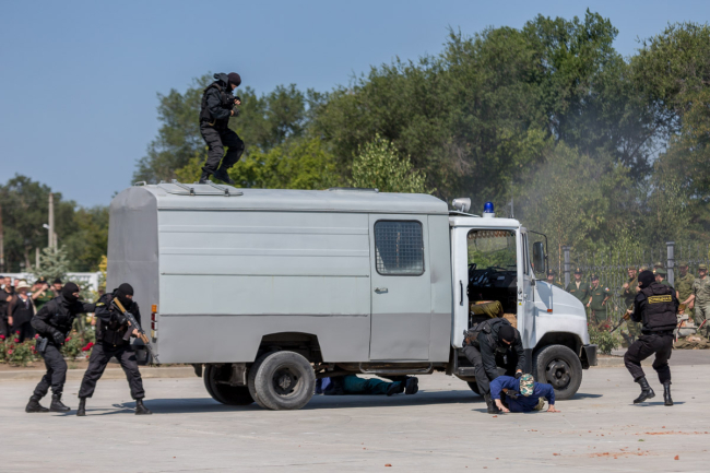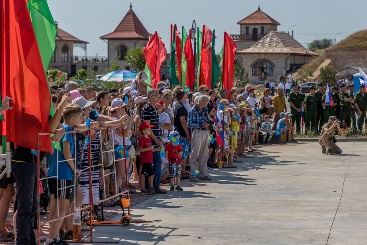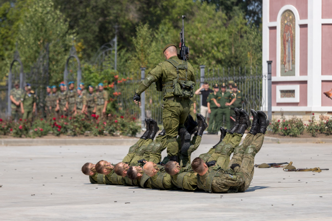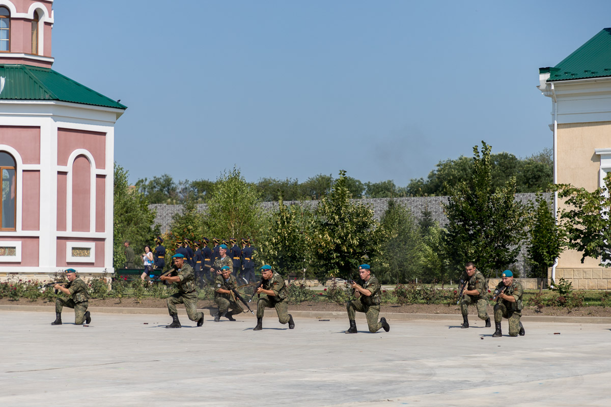 The official part of the celebration of the Peacemaker's Day in Bendery Fortress ended with a solemn march of ceremonial calculations of the Russian and Pridnestrovian contingents, as well as soldiers of the company of the Guard of Honor of the PMR Ministry of Defense. They also began an informal program with a defile on an improvised parade ground near the Alexander Nevsky Church. The baton from the silent drill platoon in demonstration performances was taken over by the fighters of the Pridnestrovian army special forces. Moreover, their hand-to-hand fighting skills, as well as the possession of firearms and cold arms, were shown by the warriors of this year’s draft.