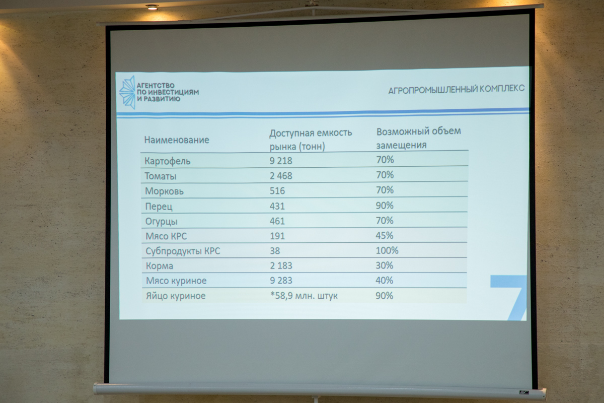 The total amount of possible investments on the presented projects is about 27.6 million dollars. The expected effect is the replacement on the chosen groups of goods by 49%, on all import (without fuel and energy group) – 4.4%. Also by the calculations of the Investment Agency, these productions can potentially give 677 new jobs and gain of GDP for 4.6%.