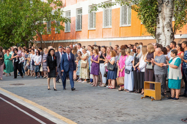 Addressing the participants of the ceremony, the PMR President noted that he was glad to return to his native school again and again. Vadim Krasnoselsky assured the children that school years are the best time, the memories of which a person carries through his whole life. The President reminded teachers and parents that it is important not only to give children knowledge, but to preserve their health and shape their personality. Parents greeted with applause the news that the Pridnestrovian school system now involves a five-day mode of the educational process.