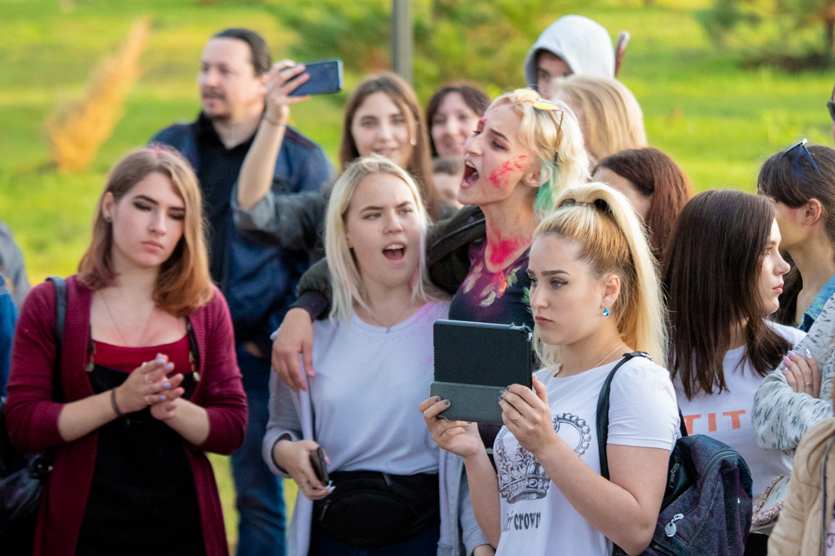 Dynamic live music of the «Rock portal» helped to return festive mood after a rain. Musicians performed well familiar songs so pupils were on one wave with the audience.