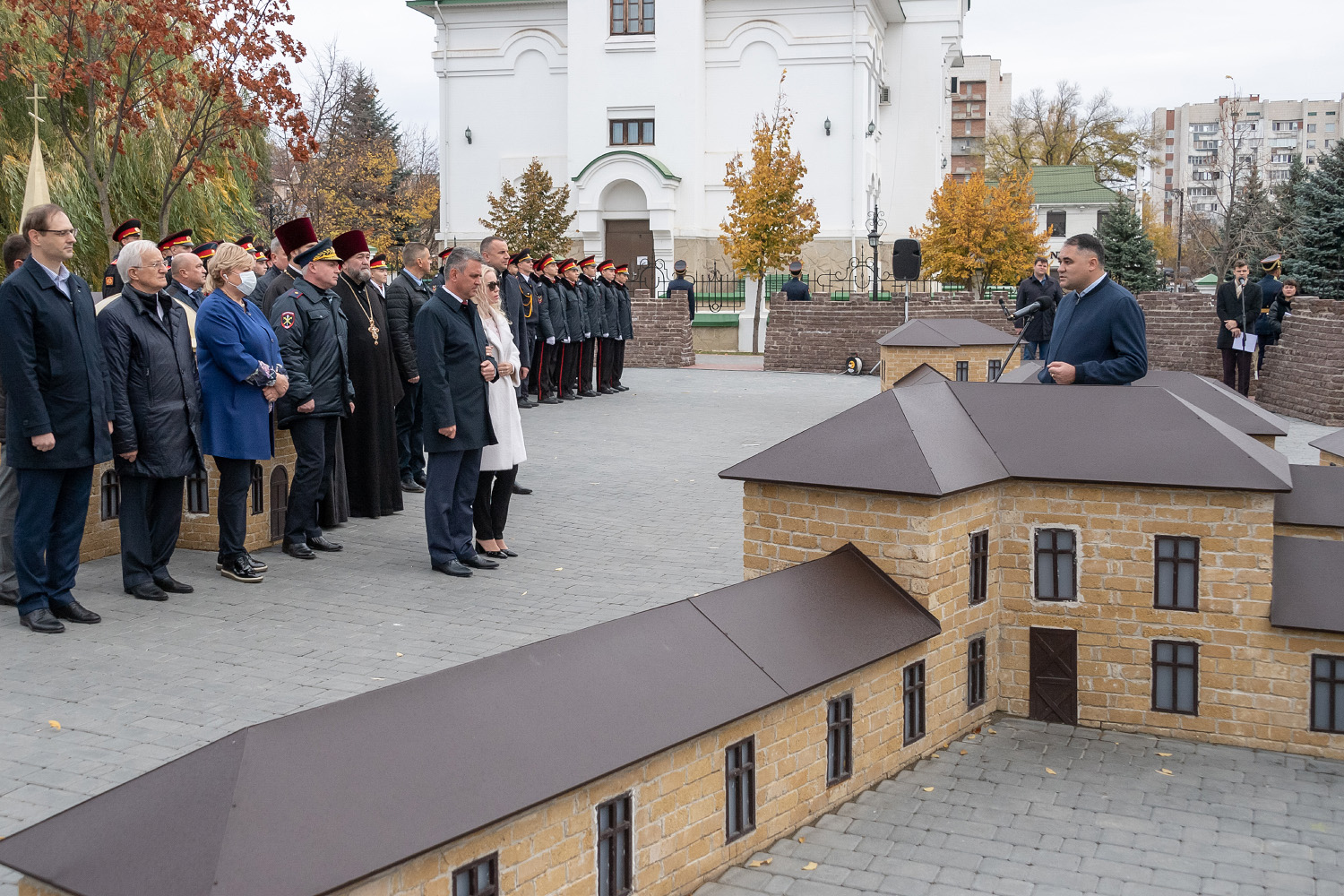 06 Nov., 2021, 12:52Opened in September 2020 the Catherine Park continues to transform. Infrastructure is developing. The educational component is strengthening. For example, each visitor will be able to learn about which regiments of the Russian army were stationed at different times in Tiraspol, participated in the construction of the city and made a significant contribution to the military history of the Pridnestrovian region. The model of the Tiraspol fortress was replenished with new elements – the regimental signs of the 55th infantry Podolsk, 56th infantry Zhitomir, Polotsk and Aleksopol musketeer regiments. Its opening was timed to the Day of National Unity. The PMR President Vadim Krasnoselsky took part in the festive event. The President was accompanied by his spouse. Heads of state authorities, city administrations and local councils, clergy, and the public have been invited.