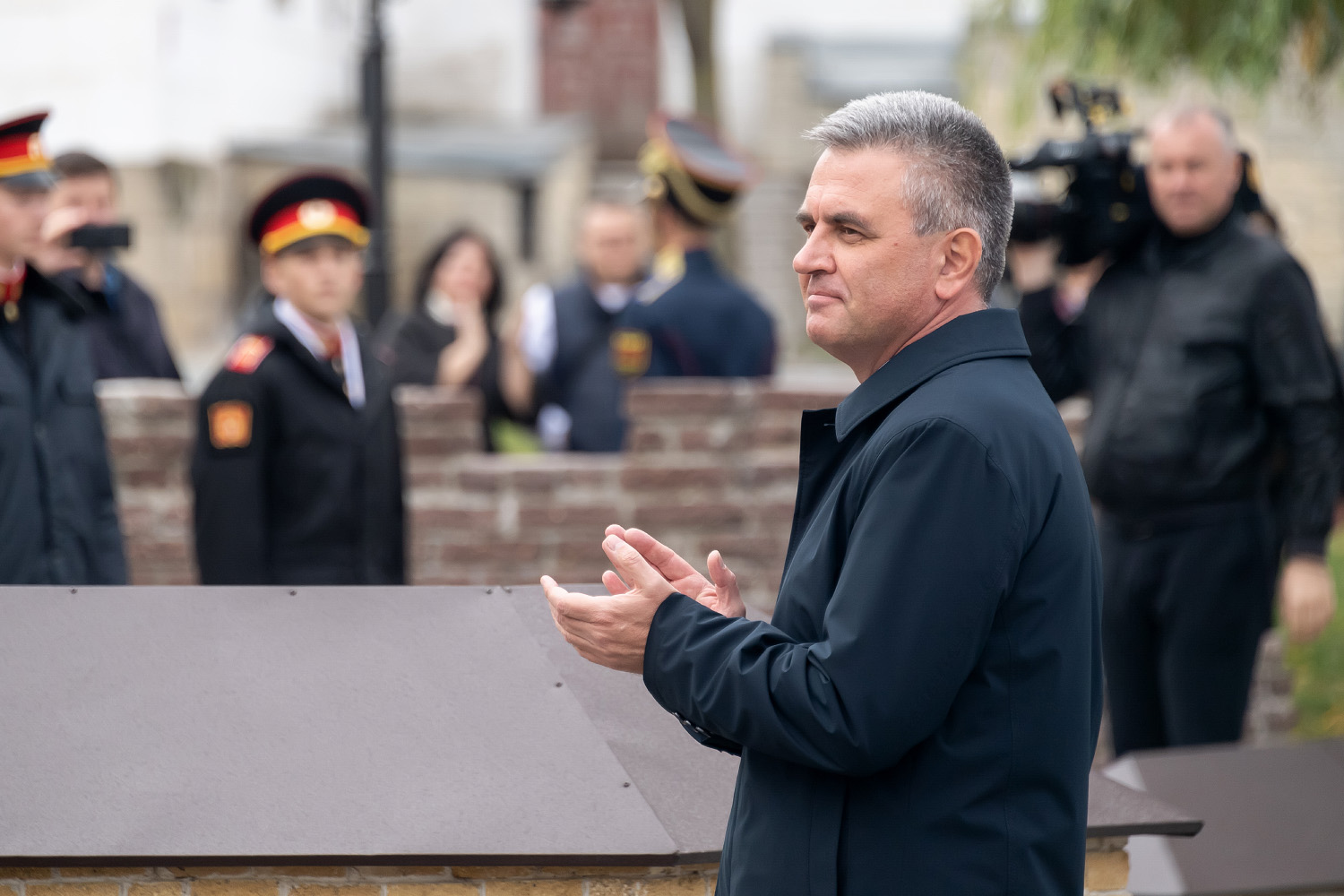 The events were watched by cadets of the Tiraspol Law Institute and of the Military Institute of the Ministry of Defense. The ceremony involved young descendants of Russian soldiers – Pridnestrovian Suvorovites and cadets, as well as servicemen of the Guard of Honor Company. The Guard of Honor Company has a double holiday today. The division was established on November 6, 1997. More than two thousand conscripts have served in it during 24 years. Not a single state event is now complete without the participation of Guard of Honor Company military personnel. The visiting card of the unit is the parade ground. The PMR President Vadim Krasnoselsky spoke in his speech about the connection between generations of defenders of the Fatherland, preservation and continuation of the best traditions of the Russian army, as well as respect with which Pridnestrovians treat the past of their country. He recalled the names of the founders of Tiraspol and the great commanders who played an important role in the history of the city. He focused on the contribution of each of the regiments, the memory of which is embodied in the regimental insignia discovered today. The President said that the popularization of history, simplification of access to it, the use of modern tools and methods, the complex of which unobtrusively enthralls citizens by studying the history of their native land, helps to preserve the memory of the events of the past. The educational function of park infrastructure is an example of this approach.
