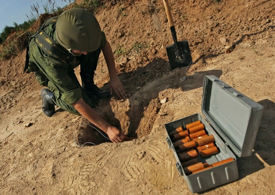 During the maneuvers EOD specialists have been divided into two groups. One of them has laid a minefield, another one has searched and neutralized it. More than 100 specialists of the OGRF engineering divisions have been involved in the maneuvers.