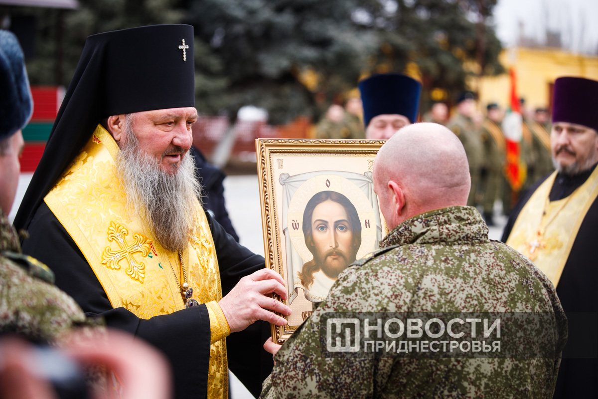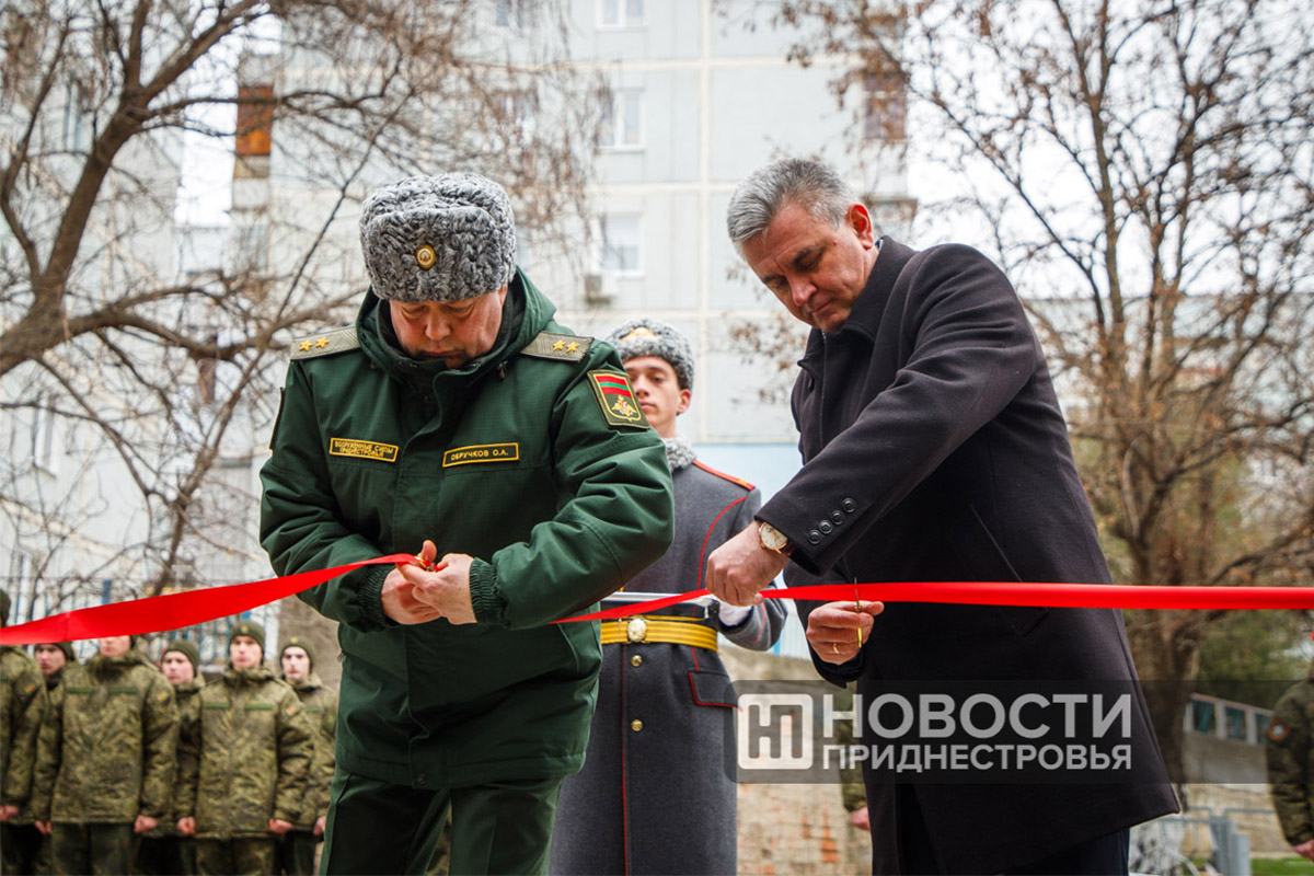 The Commander-in-Chief and the Minister of Defense cut the symbolic red ribbon. The building of the renovated buildings was consecrated by Archbishop of Tiraspol and Dubossary Sawa. The delegation headed by the President, accompanied by the Minister of Defense, inspected the renovated and equipped barracks premises. Particular attention of the guests was attracted by the modern gym, equipped with modern exercise equipment and provided with the necessary sports equipment.