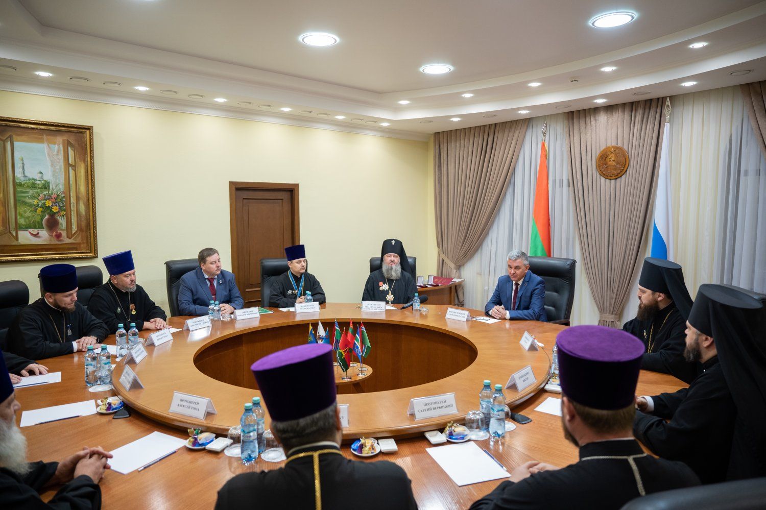 13 Oct., 2023, 12:43Meeting of the PMR President and representatives of the Tiraspol-Dubossary diocese was held at the presidential executive office. The delegation of clergy was headed by Vladyka Sawa. He was accompanied by cathedral deans of ten Pridnestrovian cathedrals, temples, house churches, as well as the archbishop's adviser for culture and education. They talked about history, development and strengthening of Orthodoxy in Pridnestrovie, the interaction of church and state.