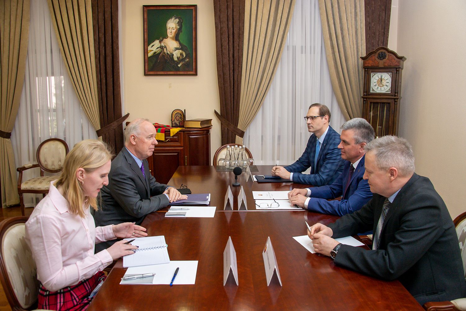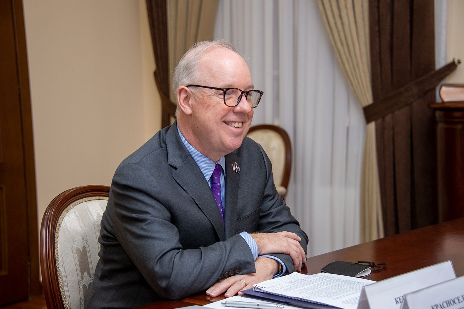 30 Mar., 2022, 15:20The meeting of the PMR President Vadim Krasnoselsky with the Ambassador Extraordinary and Plenipotentiary of the United States to the Republic of Moldova Kent Logsdon took place at the presidential executive office. The diplomat has headed the embassy since the end of last year. Today's visit to Pridnestrovie is the first, but it is not only introductory, but also a working one. Vadim Krasnoselsky, welcoming the guest, expressed hope for fruitful cooperation, noting that working contacts with representatives of the American Embassy have always been systemic and productive, based on the desire to solve issues of mutual interest in practice. The PMR President drew attention to the involvement of the American side in the work of the "5 + 2" format with its own position on topical issues on the negotiation agenda.