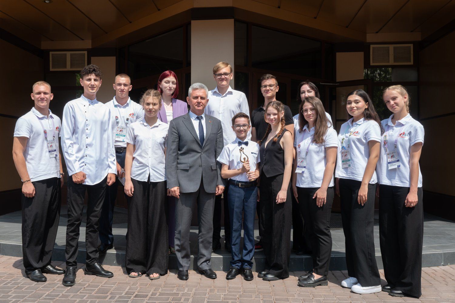 The second group of the President's interlocutors are the participants of the III International Children's Film Festival "Khrustalny Istochnik", which took place in Yessentuki. The film crew from Pridnestrovie included residents of Tiraspol Chuprina Anastasia (director, screenwriter, cameraman), Bragnebun Varvara, Bogdan Morar, Elena Rotaru, Dmitry Brynzar. Their script passed the selection stage. Filming took place directly in Yessentuki. The equipment included a phone video camera. The "Acquaintance with a Dream" film was awarded a special prize from the festival president.