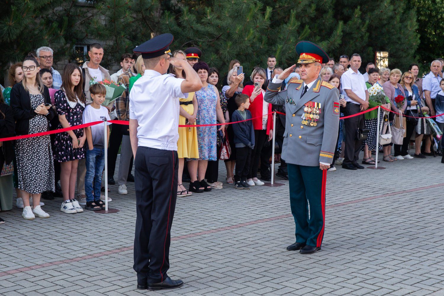 The PMR President congratulated everyone on the end of the academic year, and the graduates on the successful completion of an important stage in their lives, addressing the personnel of the corps – cadets and employees, as well as the parents of the students. The President drew attention to the fact that in essence the adult young people in uniform came out today onto the parade ground to participate in the ceremonial event with their parents, who until now had been guiding the children along their life's path. Vadim Krasnoselsky noted that there will be more independence in the future, but called for not weakening family ties and always supporting loved ones at the same time. The PMR President spoke about the importance of honoring and remembering teachers and visiting the educational institution if possible and sharing their achievements with teachers. The President focused on the discipline and command skills acquired by the cadets, which will help in life. The President's wish to the graduates is to move forward. According to him, it is not enough to be brave, smart, well-read to achieve a goal: results are achieved by those who do not give up. "You can do anything!", Vadim Krasnoselsky assured.