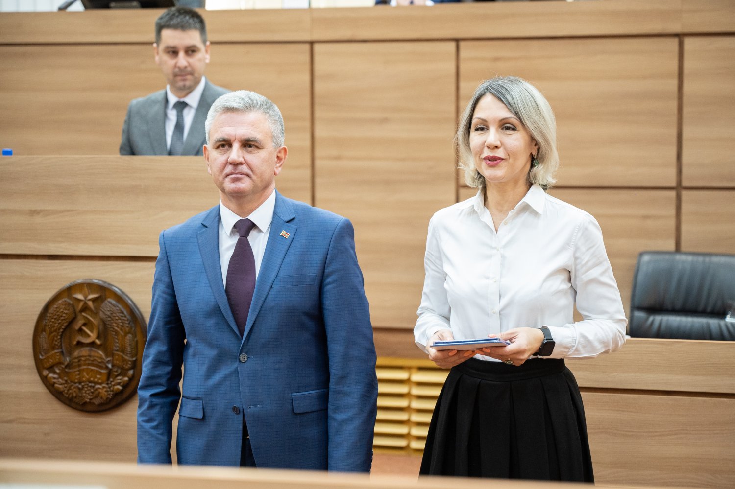 Vadim Krasnoselsky presented state awards to the most distinguished employees of the Supreme Council apparatus. The PMR President was awarded the sign “For his contribution to the cause of parliamentarism” on the occasion of the 33rd anniversary of the legislature of the republic.