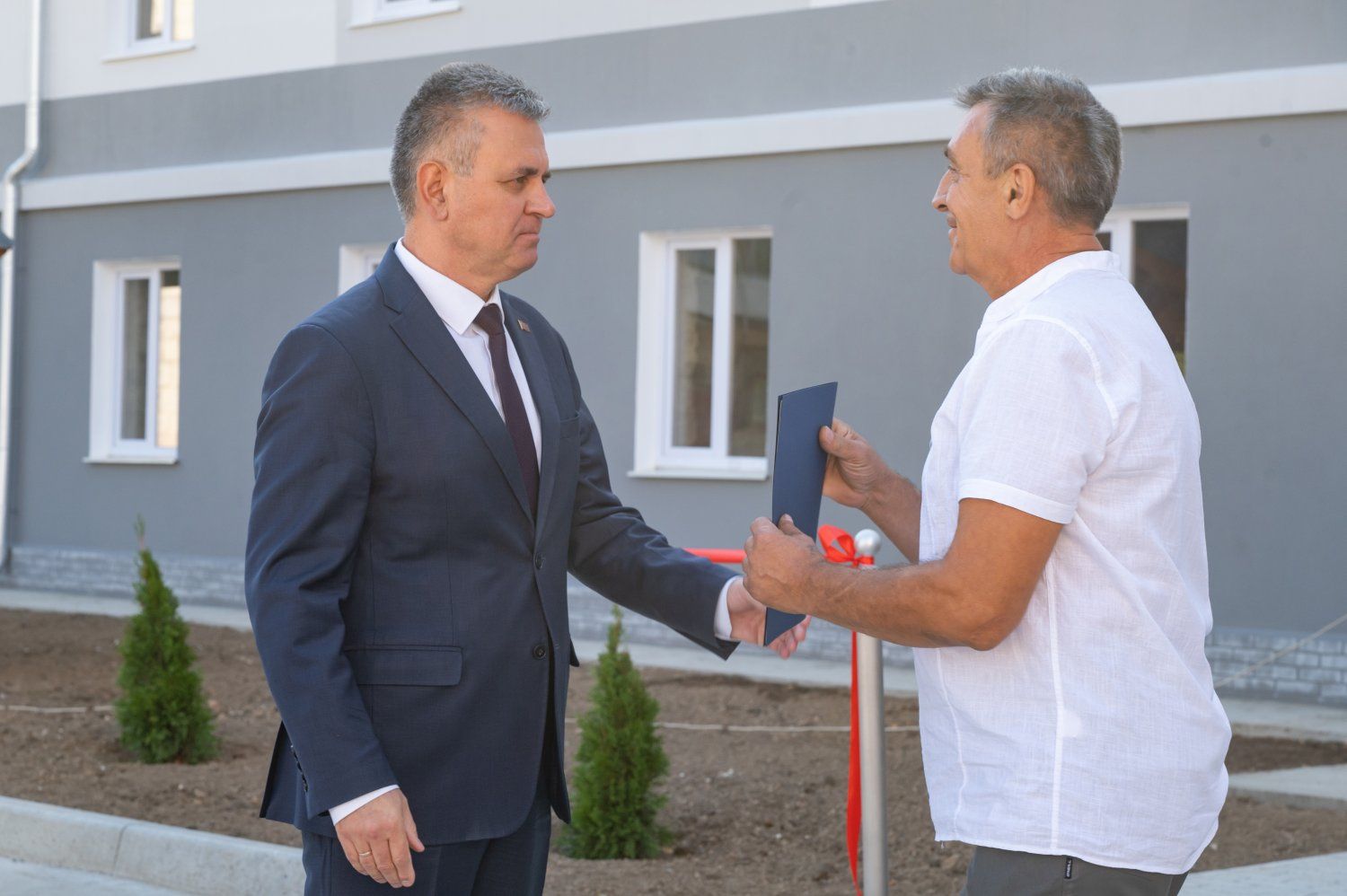 29 Aug., 2025, 12:37A grand opening of the residential building "YUG-4" took place in the village of Novotiraspolsky. The keys to 32 new apartments were received by the employees of the Ministry of Internal Affairs. This building was previously an abandoned dormitory. It was completely renovated over the course of a year and a half: they remodeled it, replaced the windows and utility networks, insulated the facade and updated the roof. These are modern two-room apartments with an area of up to 55 square meters now. There is a parking lot next to the house, and a recreation area is provided.