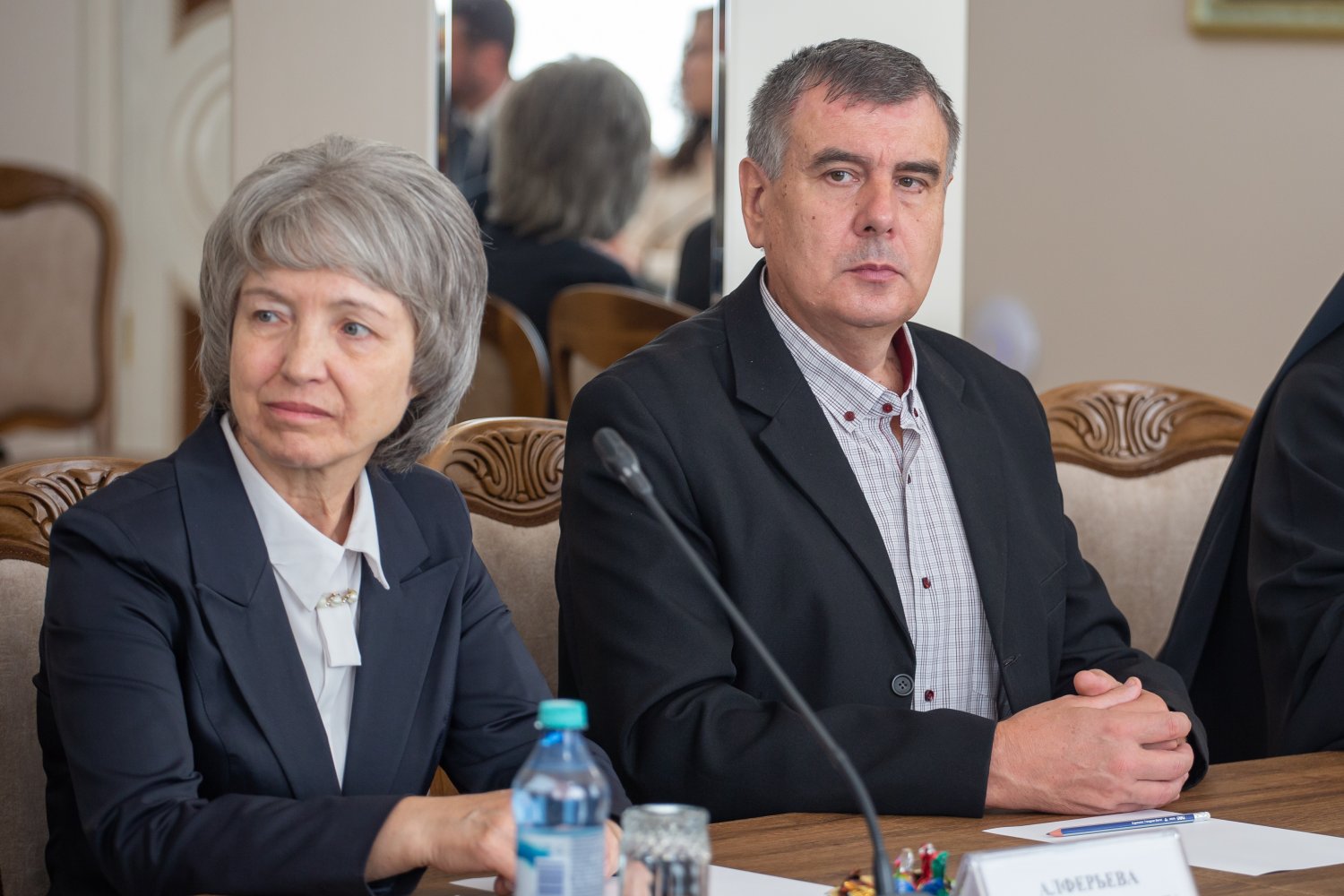 The President expressed gratitude to the laureates for their work and encouraged them to continue it. He said that the material and technical support did not correspond to the highest level of professionalism of representatives of the research sphere many years. The situation is changing noticeably at present. Vadim Krasnoselsky recalled the renewal of infrastructure and equipment of educational, scientific, cultural and archiving facilities. The participants of the meeting discussed various topics. The head of the State Service for Documentation and Archives Management Zinaida Todorashko outlined the problem of personnel shortage in the field of archiving. She considers that specialists should be trained within the republic at the site of the state university. They talked about the small staffing of university groups in a number of specialties and the lack of interest among young people in some areas, which in the near future will aggravate the personnel shortage in various spheres of life of the Pridnestrovian society. They discussed the obsolescence of many regulations, requirements for maintaining and forms of documentation. Representatives of PSU, noting with gratitude the infrastructural changes in the university, identified university facilities that are still awaiting repair and re-equipment. It was noted that the immediate plans include internal repairs of "G" building and the premises of the Faculty of Economics. Next year they will undertake the reconstruction of one of the student dormitories if possible. The further stages of the upcoming work were also described in detail. The interlocutors discussed traditional and modern approaches to organizing the educational process, issues of education and ideology. An initiative was voiced to introduce the "Pridnestrovian studies" at various educational levels.