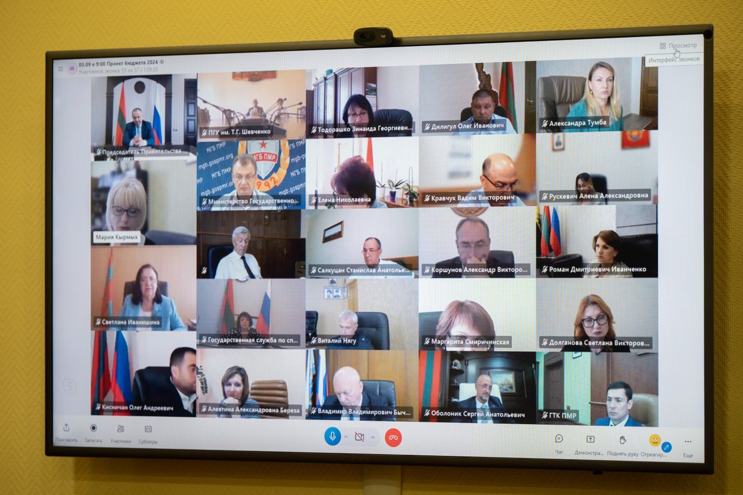 05 Sep., 2023, 12:04A big working discussion took place today on the draft of the main financial document of the country for the coming year. The meeting, organized via videoconference, was chaired by the President. More than fifty officials representing state authorities and local self-government were invited to the conversation. The main speakers were the Chairman of the Government of the Pridnestrovian Moldavian Republic Alexander Rosenberg and the head of the Ministry of Finance Alena Ruskevich. The meeting participants were presented with the main parameters of the future budget, based on the figures for 2023. It was noted that the revenue side is expected to decrease by 558 million rubles compared to 2023. The unmet need for funds for the implementation of development programs prescribed in the project makes 180 million. The project size of the Capital Investment Fund 2024 is 275 million. Financing of salaries of state employees is expected to be at the level of the current period, with the exception of a small number of separately identified categories. Options for saving public funds are being discussed. For example, 17 million is a reduction in the cost of paying for communications and utilities by state authorities (we are talking about a practical reduction in consumption). The cost of purchasing housing for orphans is planned to be larger than this year.